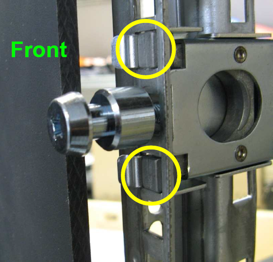 ➤ Stellen Sie sicher, dass die rechteckigen Arretierungs-Bolzen korrekt in den Rack-Löchern verankert sind.