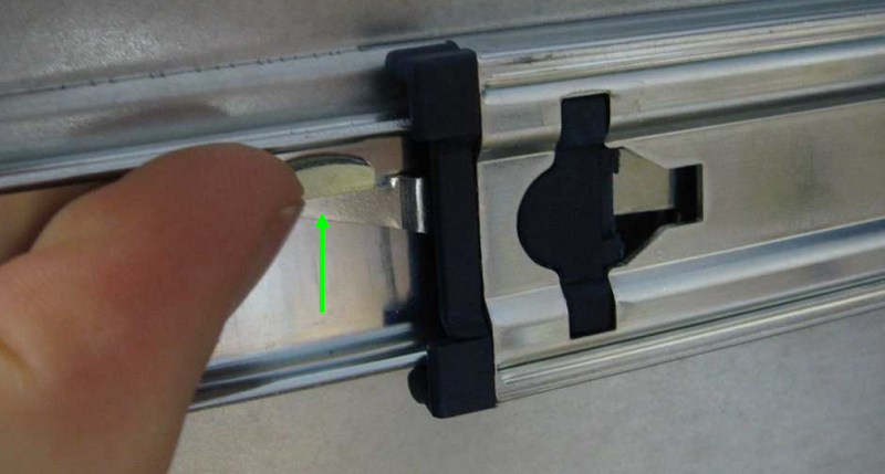 Die Rack-Schienen müssen zuerst in zwei Teile zerlegt werden. Hierzu gehen Sie wie folgt vor: