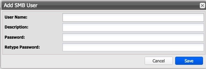 ➤ Klicken Sie im Bereich "SMB" unter "Users" auf die Schaltfläche "Add".