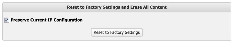 ➤ Click the “Reset to Factory Settings” button.