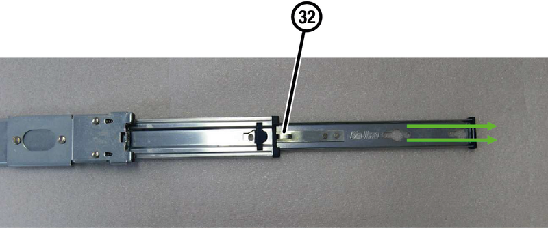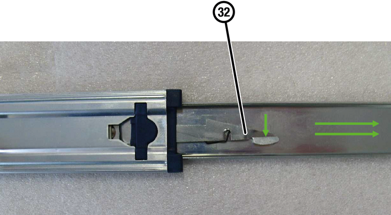 ➤ Pull the inner rail out of the outer rail until the unlock lever (32) is visible.