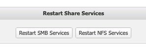 Pour redémarrer globalement les services de partage SMB ou NFS, utilisez les boutons correspondants dans la section « Restart Share Services ».