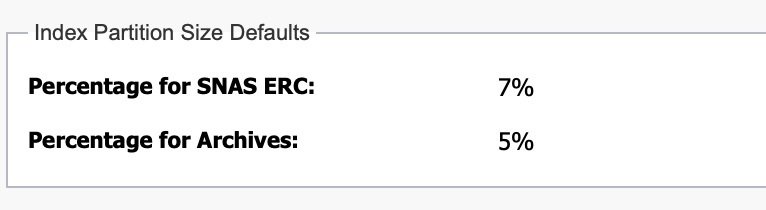 Sous la rubrique « Index Partition Size Defaults », il est possible de modifier les valeurs par défaut de la taille des partitions d’index dans la zone de l’archive WORM ainsi que dans la zone du Secure NAS ERC. Ces valeurs concernent les futurs volumes et archives SNAS ERC créés, ainsi que les Silent Bricks ajoutés à des volumes ou archives SNAS ERC existants.