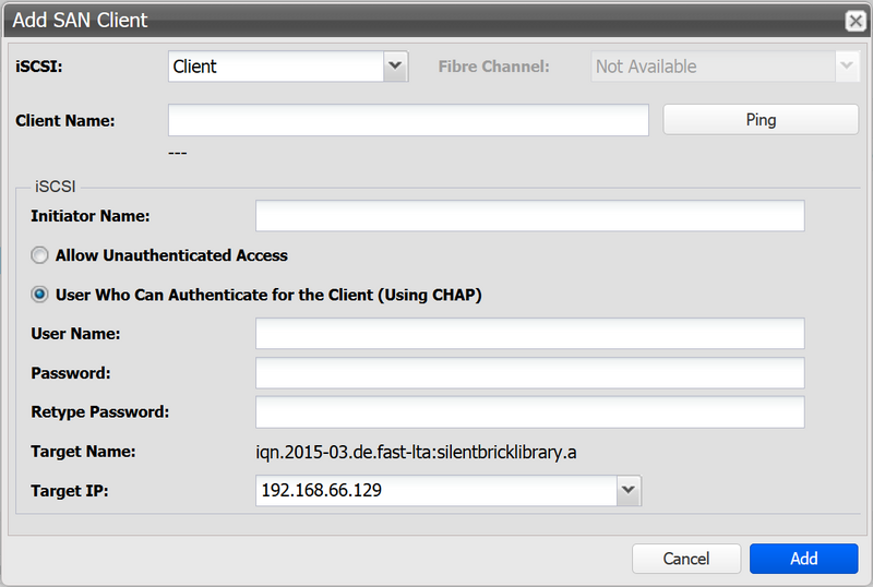 ➤ Het venster „Add SAN Client” wordt weergegeven.